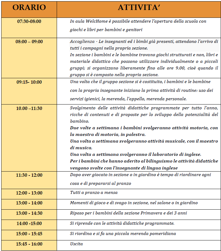 ORGANIZZAZIONE DELLA GIORNATA SCOLASTICA